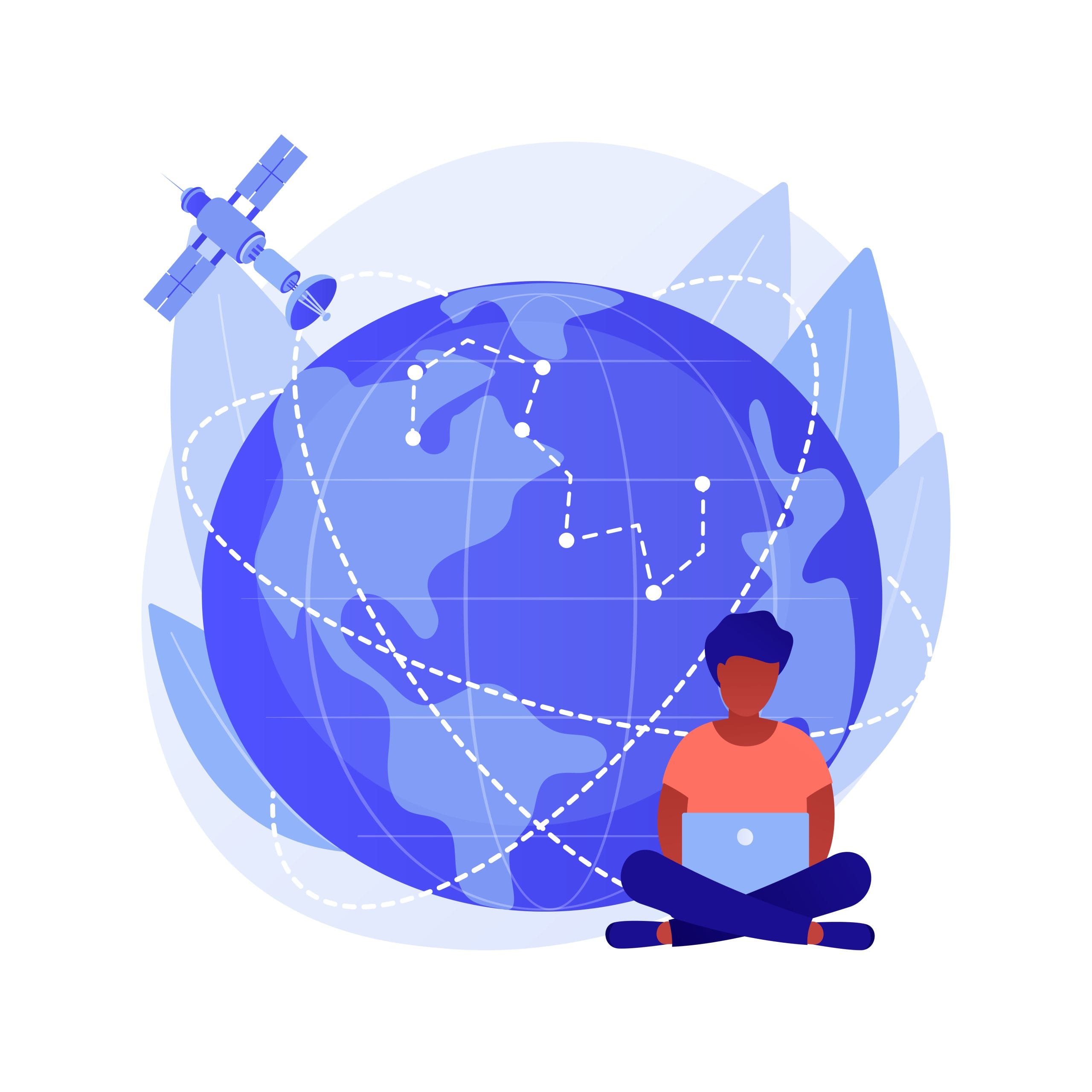Los sistemas VSAT emplean satélites geosíncronos, (Hispasat es un ejemplo de ellos), cuya órbita geoestacionaria se ubica sobre el plano ecuatorial y a una distancia de la Tierra de aproximadamente 36.000 Km. lo que proporciona que dicho satélite se mantenga en una posición fija con respecto a un punto de la Tierra.