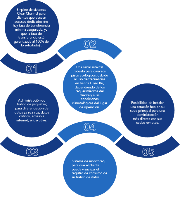 • Comunicación de red, internet, video y telefonía IP para una empresa, sucursal, casa de campo o facilidad ubicada en áreas remotas donde los servicios de Internet no llegan.