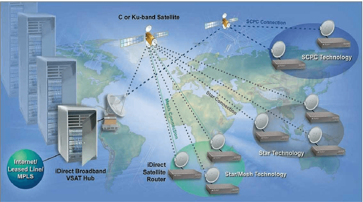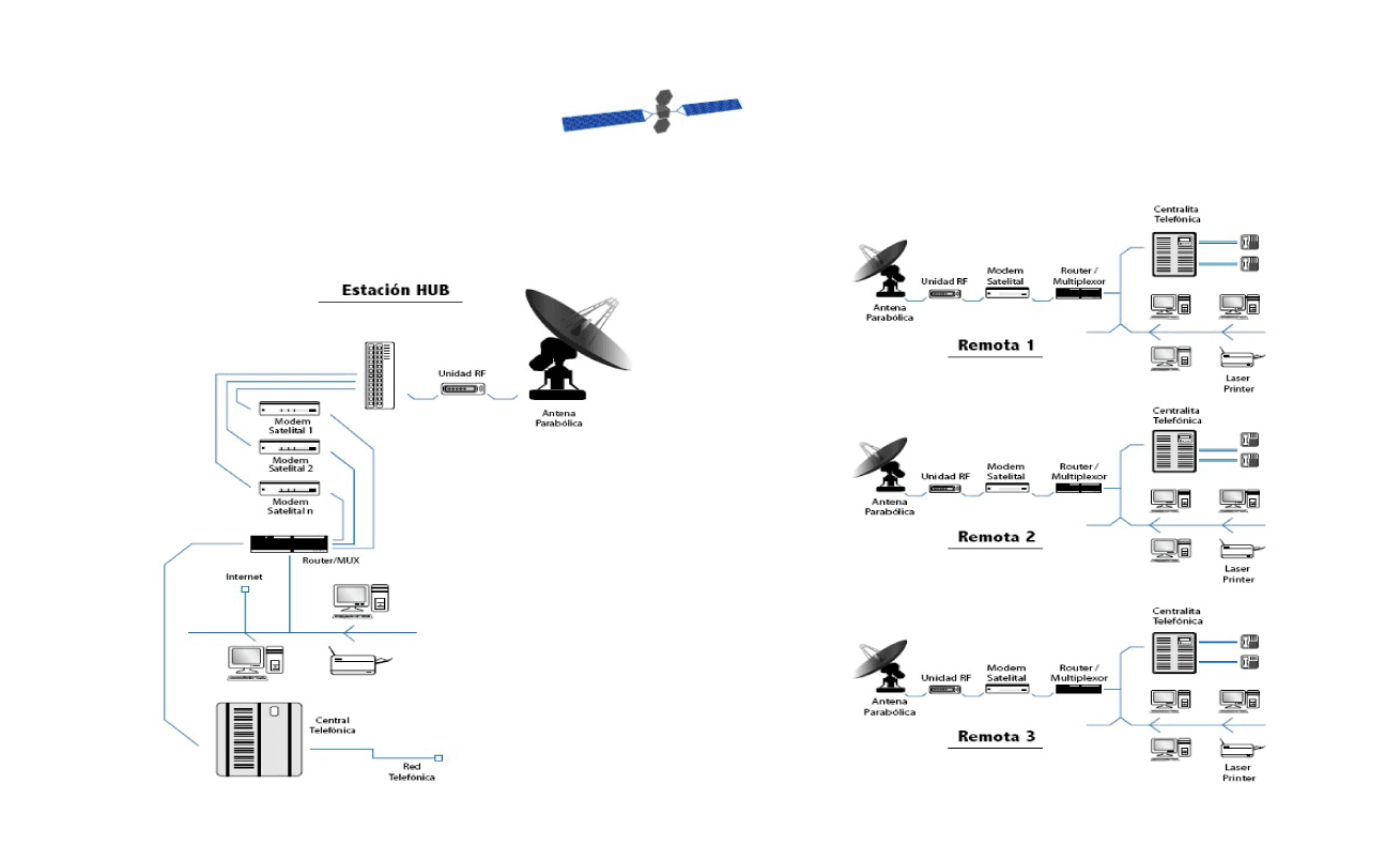 Los sistemas VSAT (Very Small Aperture Terminal), son redes de comunicación por satélite que empleando antenas de pequeñas dimensiones, permiten el establecimiento de una gran variedad de servicios de comunicaciones entre un gran número de puntos o estaciones remotas, pudiendo estar supervisadas por una estación principal llamada Hub, NOC o Telepuerto.